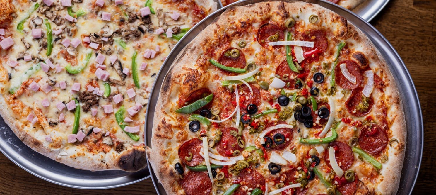 2 fyrir 1 af pizzum. Í boði á mánudögum og þriðjudögum frá klukkan 11:30 - 21:00.