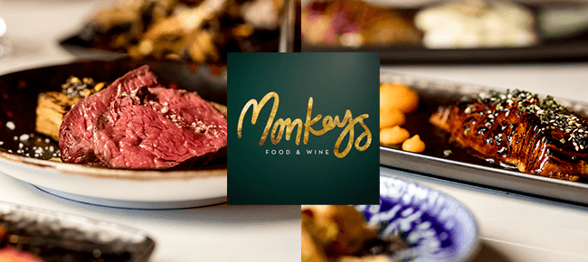 Monkeys býður 2f1 af aðalréttum af hádegismatseðli frá mánudegi til miðvikudaga kl. 12:00-14:00. Gildir ekki með öðrum tilboðum.